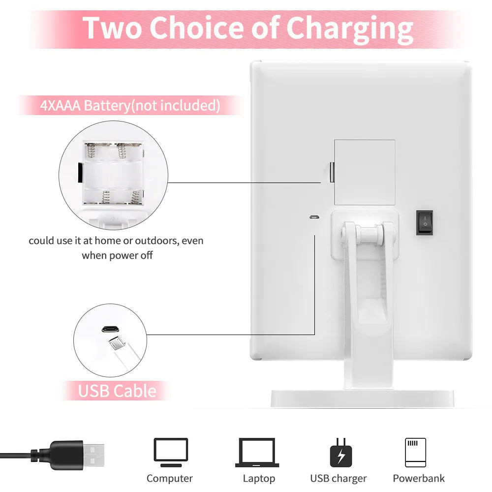 - Cordless design with two power options: 4*AAA batteries (Not included) or external micro USB port (compatible with Power Bank, USB Wall Charger, PC Desktop, or Laptop).